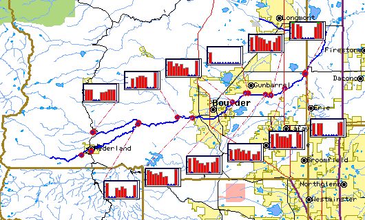 Dissolved Oxygen (DO) is the amount of oxygen dissolved in the water. DO is a very important indicator of a water body's ability to support aquatic life. The amount of DO in water depends on several factors, including temperature (the colder the water, the more oxygen can be dissolved); the volume and velocity of water flowing in the water body; and the amount of organisms using oxygen for respiration. The amount of oxygen dissolved in water is expressed as a concentration, in milligrams per liter (mg/l) of water. The optimal DO for adult brown trout is 9-12 mg/l. Human activities that affect DO levels include the removal of riparian vegetation, runoff from roads, and sewage discharge. | |||||||||