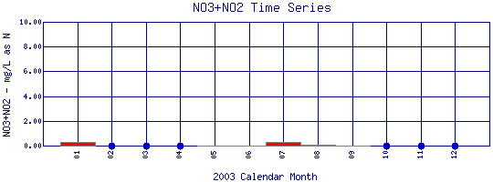 Nitrate + Nitrite Time Series for 2003 North Boulder Creek at Boulder Falls |