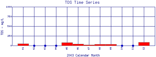 Total Dissolved Solids Time Series for 2003 North Boulder Creek at Boulder Falls |