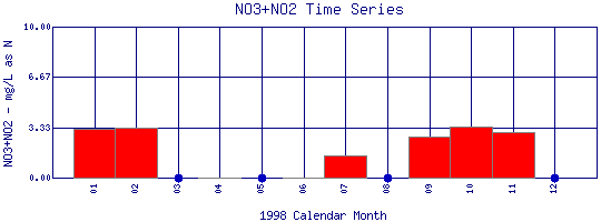 Nitrate + Nitrite Time Series for 1998 Coal Creek Above Boulder Creek Confluence |