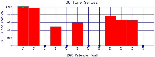 Specific Conductance Time Series for 1998 Coal Creek Above Boulder Creek Confluence |