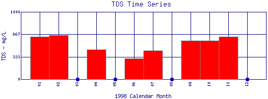 Total Dissolved Solids Time Series for 1998 Coal Creek Above Boulder Creek Confluence |