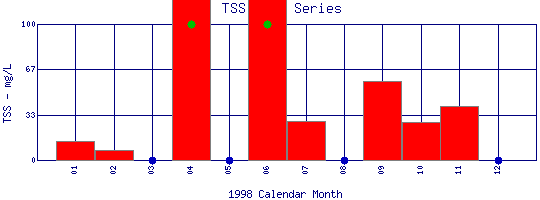 Total Suspended Solids Time Series for 1998 Coal Creek Above Boulder Creek Confluence |