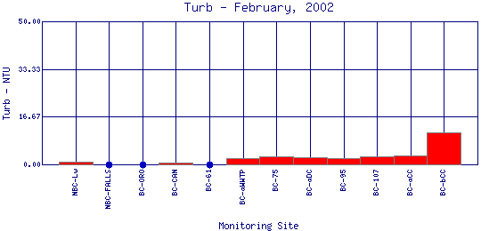 Turbidity is a measure of the cloudiness of the water. Cloudiness is caused by suspended solids or organic matter including silt, microorganisms, plant fibers, sawdust chemicals and coal dust. High levels of turbidity can block light from reaching submerged aquatic vegetation and can raise surface water temperatures because the suspended particles absorb heat from sunlight. The most frequent causes of turbidity are from logging, road and building construction, and mining activity. Turbidity affects fish by decreasing light penetration thus reducing the amount of photosynthesis taking place in the water. This reduces the amount of oxygen available to fish. Large amounts of suspended solids can also clog fish gills, and it affects their ability to see and catch foo