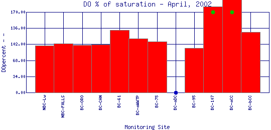 Longitudinal DO Percent of Saturation Profiles for April, 2002