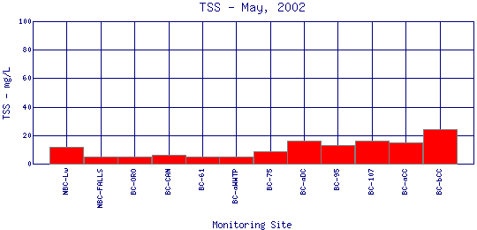 Longitudinal Total Suspended Solids Profiles for May, 2002