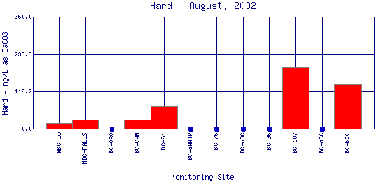 Hardness generally refers to the amount of calcium and magnesium in water. In household use, these cations (ions with a charge greater than +1) can prevent soap from sudsing and leave behind a white scum in bathtubs. In the aquatic environment, calcium and magnesium help keep fish from absorbing metals, such as lead, arsenic, and cadmium, into their bloodstream through their gills. Therefore, the harder the water, the less easy it is for toxic metals to absorb onto gills. Water in the Boulder Creek watershed is generally soft because the water comes mainly from melting snow which is low in minerals and metals.