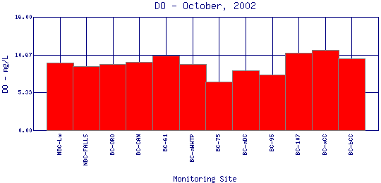 Longitudinal Dissolved Oxygen Profiles for October, 2002