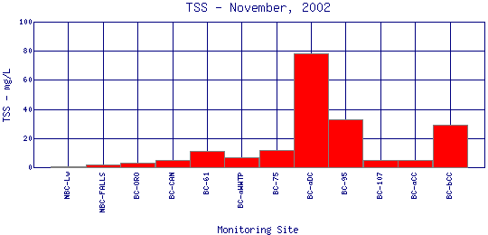 Longitudinal Total Suspended Solids Profiles for November, 2002