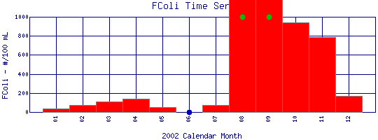 Fecal Coliform Time Series for 2002 Boulder Creek at 95th St |