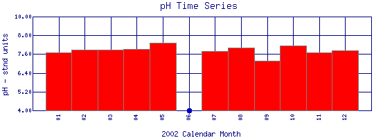 pH Time Series for 2002 Boulder Creek above WW Plant |