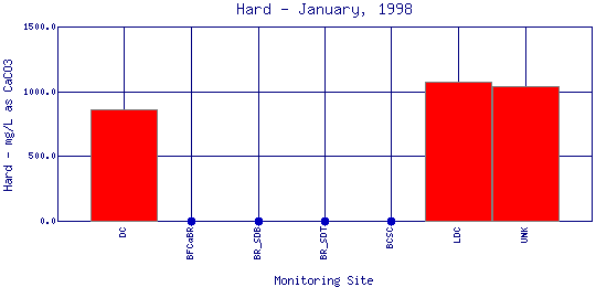 Hardness generally refers to the amount of calcium and magnesium in water. In household use, these cations (ions with a charge greater than +1) can prevent soap from sudsing and leave behind a white scum in bathtubs. In the aquatic environment, calcium and magnesium help keep fish from absorbing metals, such as lead, arsenic, and cadmium, into their bloodstream through their gills. Therefore, the harder the water, the less easy it is for toxic metals to absorb onto gills. Water in the Boulder Creek watershed is generally soft because the water comes mainly from melting snow which is low in minerals and metals.