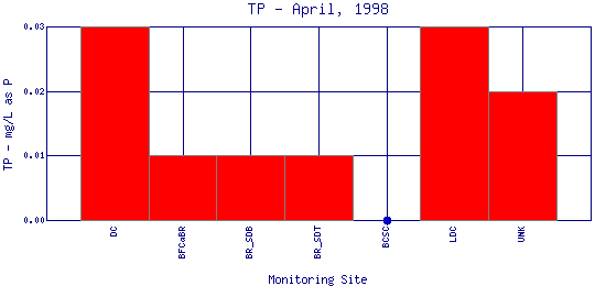 The above map indicates water quality monitoring sites. To view data at a specific site select it from the map with the mouse.