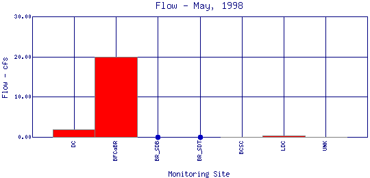 Flow is the volume of water moving past a point in a unit of time. Two things make up flow: the volume of water in the stream, and the velocity of the water moving past a given point. Flow affects the concentration of dissolved oxygen, natural substances, and pollutants in a water body. Flow is measured in units of cubic feet per second (cfs). Peak flows for Boulder Creek in the spring can reach as high as 300-800 cfs and as low as 10-50 cfs in the fall months.