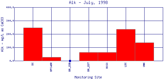 Alkalinity refers to how well a water body can neutralize acids. Alkalinity measures the amount of alkaline compounds in water, such as carbonates (CO3 2-), bicarbonates (HCO3 -), and hydroxides (OH-). These compounds are natural buffers that can remove excess hydrogen ions that have been added from sources such as acid rain or acid mine drainage. Alkalinity mitigates or relieves metals toxicity by using available HCO3 - and CO3 2- to take metals out of solution, thus making it unavailable to fish. Alkalinity is affected by the geology of the watershed; watersheds containing limestone will have a higher alkalinity than watersheds where granite is predominant. The Boulder Creek Watershed is composed primarily of granite rocks, thus the water has a lower alkalinity content.