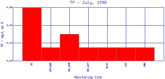 The above map indicates water quality monitoring sites. To view data at a specific site select it from the map with the mouse.