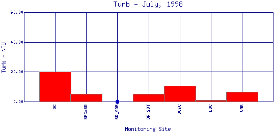 The above map indicates water quality monitoring sites. To view data at a specific site select it from the map with the mouse.