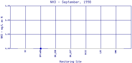 The above map indicates water quality monitoring sites. To view data at a specific site select it from the map with the mouse.