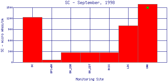 Specific Conductance is a measure of how well water can pass an electrical current. It is an indirect measure of the presence of inorganic dissolved solids, such as chloride, nitrate, sulfate, phosphate, sodium, magnesium, calcium, and iron. These substances conduct electricity because they are negatively or positively charged when dissolved in water. The concentration of dissolved solids, or the conductivity, is affected by the bedrock and soil in the watershed. It is also affected by human influences. For example, agricultural runoff can raise conductivity because of the presence of phosphate and nitrate.