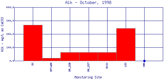 Alkalinity refers to how well a water body can neutralize acids. Alkalinity measures the amount of alkaline compounds in water, such as carbonates (CO3 2-), bicarbonates (HCO3 -), and hydroxides (OH-). These compounds are natural buffers that can remove excess hydrogen ions that have been added from sources such as acid rain or acid mine drainage. Alkalinity mitigates or relieves metals toxicity by using available HCO3 - and CO3 2- to take metals out of solution, thus making it unavailable to fish. Alkalinity is affected by the geology of the watershed; watersheds containing limestone will have a higher alkalinity than watersheds where granite is predominant. The Boulder Creek Watershed is composed primarily of granite rocks, thus the water has a lower alkalinity content.