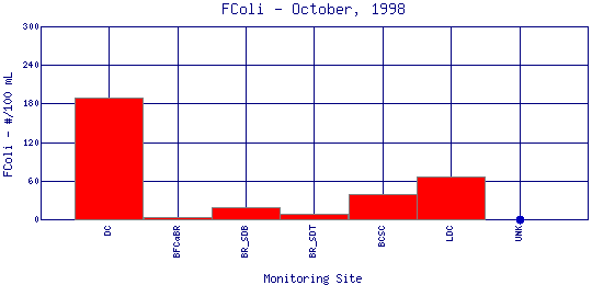 Fecal Coliform Bacteria is found in the intestinal tracts of mammals. High concentrations of the bacteria in water or sludge suggest the presence of disease-causing organisms, and may be caused by septic tank failure, poor pasture and animal keeping practices, pet waste, and urban runoff.