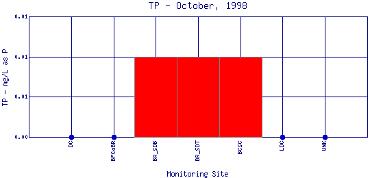 The above map indicates water quality monitoring sites. To view data at a specific site select it from the map with the mouse.