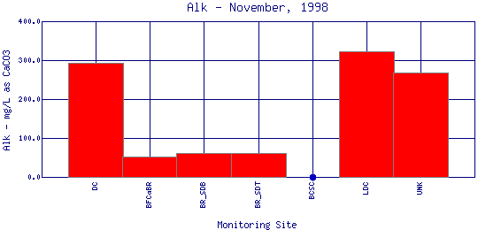 Alkalinity refers to how well a water body can neutralize acids. Alkalinity measures the amount of alkaline compounds in water, such as carbonates (CO3 2-), bicarbonates (HCO3 -), and hydroxides (OH-). These compounds are natural buffers that can remove excess hydrogen ions that have been added from sources such as acid rain or acid mine drainage. Alkalinity mitigates or relieves metals toxicity by using available HCO3 - and CO3 2- to take metals out of solution, thus making it unavailable to fish. Alkalinity is affected by the geology of the watershed; watersheds containing limestone will have a higher alkalinity than watersheds where granite is predominant. The Boulder Creek Watershed is composed primarily of granite rocks, thus the water has a lower alkalinity content.