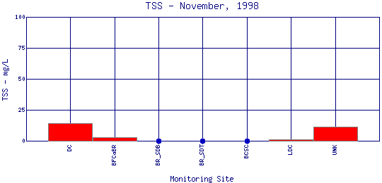 The above map indicates water quality monitoring sites. To view data at a specific site select it from the map with the mouse.