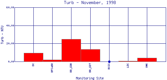 The above map indicates water quality monitoring sites. To view data at a specific site select it from the map with the mouse.