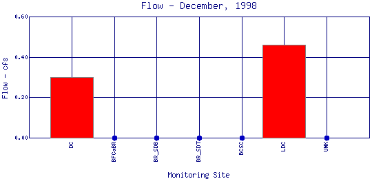 Flow is the volume of water moving past a point in a unit of time. Two things make up flow: the volume of water in the stream, and the velocity of the water moving past a given point. Flow affects the concentration of dissolved oxygen, natural substances, and pollutants in a water body. Flow is measured in units of cubic feet per second (cfs). Peak flows for Boulder Creek in the spring can reach as high as 300-800 cfs and as low as 10-50 cfs in the fall months.