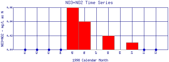 Nitrate + Nitrite Time Series for 1998 Boulder Creek Supply Canal |