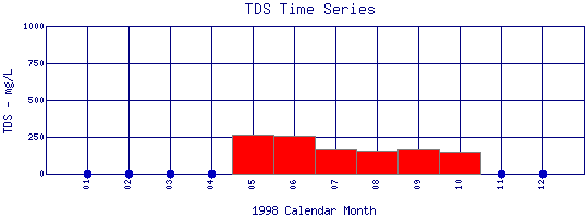 Total Dissolved Solids Time Series for 1998 Boulder Creek Supply Canal |