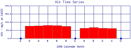 Total Alkalinity Time Series for 1998 Boulder Reservoir South Dam - Bottom |