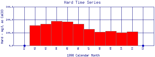 Total Hardness Time Series for 1998 Boulder Reservoir South Dam - Bottom |