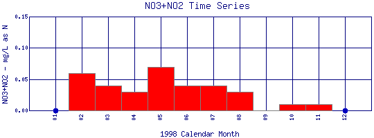 Nitrate + Nitrite Time Series for 1998 Boulder Reservoir South Dam - Bottom |