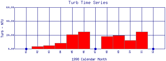 Turbidity Time Series for 1998 Boulder Reservoir South Dam - Bottom |