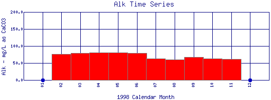 Total Alkalinity Time Series for 1998 Boulder Reservoir South Dam - Top |
