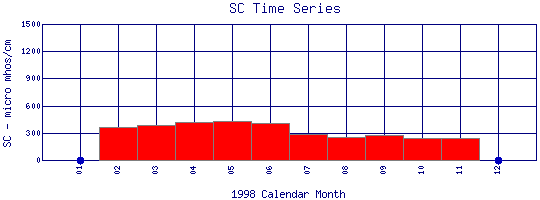 Specific Conductance Time Series for 1998 Boulder Reservoir South Dam - Top |
