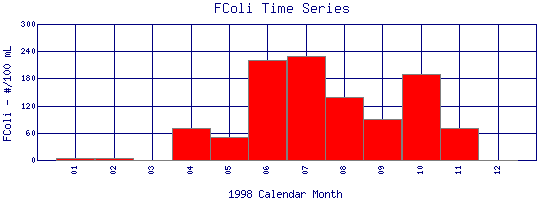 Fecal Coliform Time Series for 1998 Dry Creek |
