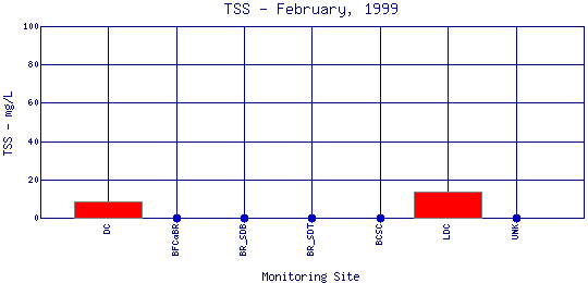 The above map indicates water quality monitoring sites. To view data at a specific site select it from the map with the mouse.