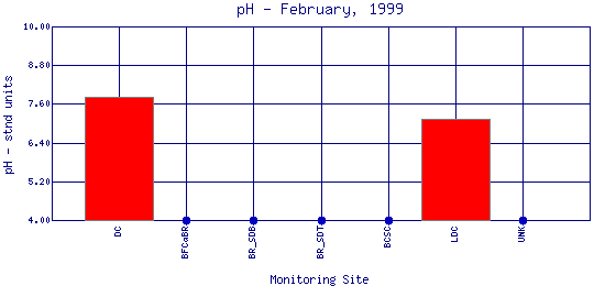 pH measures hydrogen concentration in water. pH is presented on a scale from 0 to 14. A solution with a pH value of 7 is neutral; a solution with a pH value less than 7 is acidic; a solution with a pH value greater than 7 is basic. Natural waters usually have a pH between 6 and 9. The scale is negatively logarithmic, so each whole number (reading downward) is ten times the preceding one (for example, pH 5.5 is 100 times as acidic as pH 7.5). The pH of natural waters can be made acidic or basic by human activities. For example, coal-burning power plants and heavy automobile traffic can produce nitrous oxides and sulfur dioxide, making the rain and snow highly acidic.