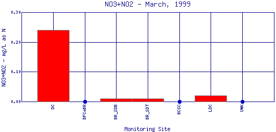 The above map indicates water quality monitoring sites. To view data at a specific site select it from the map with the mouse.
