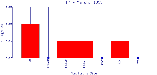 The above map indicates water quality monitoring sites. To view data at a specific site select it from the map with the mouse.
