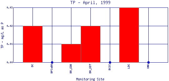 The above map indicates water quality monitoring sites. To view data at a specific site select it from the map with the mouse.