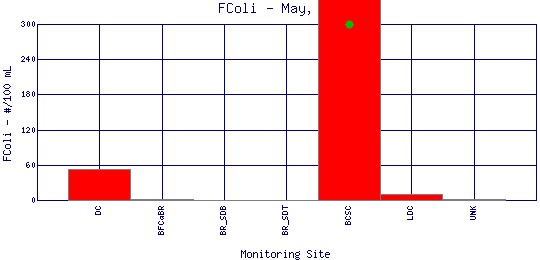 Fecal Coliform Bacteria is found in the intestinal tracts of mammals. High concentrations of the bacteria in water or sludge suggest the presence of disease-causing organisms, and may be caused by septic tank failure, poor pasture and animal keeping practices, pet waste, and urban runoff.