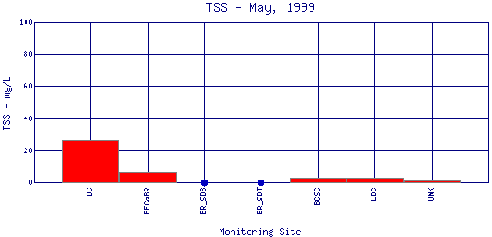 The above map indicates water quality monitoring sites. To view data at a specific site select it from the map with the mouse.