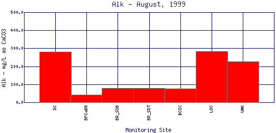 Alkalinity refers to how well a water body can neutralize acids. Alkalinity measures the amount of alkaline compounds in water, such as carbonates (CO3 2-), bicarbonates (HCO3 -), and hydroxides (OH-). These compounds are natural buffers that can remove excess hydrogen ions that have been added from sources such as acid rain or acid mine drainage. Alkalinity mitigates or relieves metals toxicity by using available HCO3 - and CO3 2- to take metals out of solution, thus making it unavailable to fish. Alkalinity is affected by the geology of the watershed; watersheds containing limestone will have a higher alkalinity than watersheds where granite is predominant. The Boulder Creek Watershed is composed primarily of granite rocks, thus the water has a lower alkalinity content.