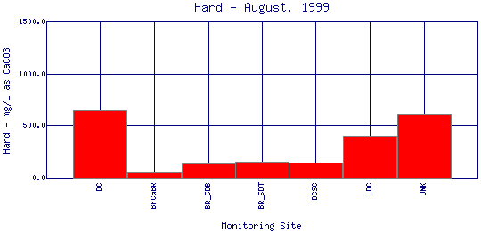 Hardness generally refers to the amount of calcium and magnesium in water. In household use, these cations (ions with a charge greater than +1) can prevent soap from sudsing and leave behind a white scum in bathtubs. In the aquatic environment, calcium and magnesium help keep fish from absorbing metals, such as lead, arsenic, and cadmium, into their bloodstream through their gills. Therefore, the harder the water, the less easy it is for toxic metals to absorb onto gills. Water in the Boulder Creek watershed is generally soft because the water comes mainly from melting snow which is low in minerals and metals.