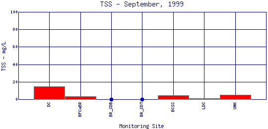 The above map indicates water quality monitoring sites. To view data at a specific site select it from the map with the mouse.
