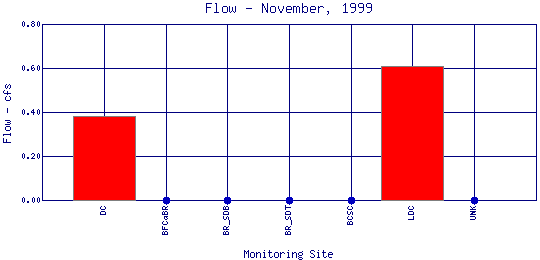 The above map indicates water quality monitoring sites. To view data at a specific site select it from the map with the mouse.